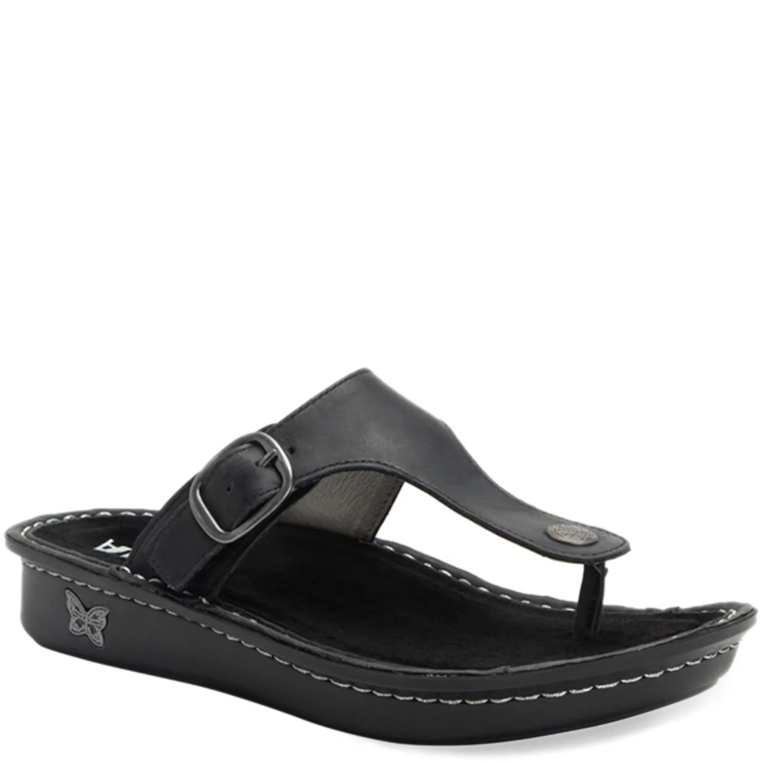 - Decorative metal buckle accents
