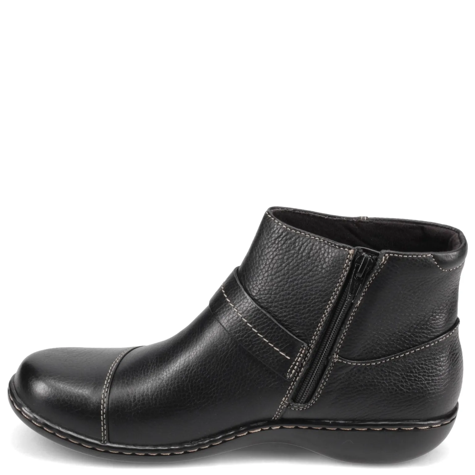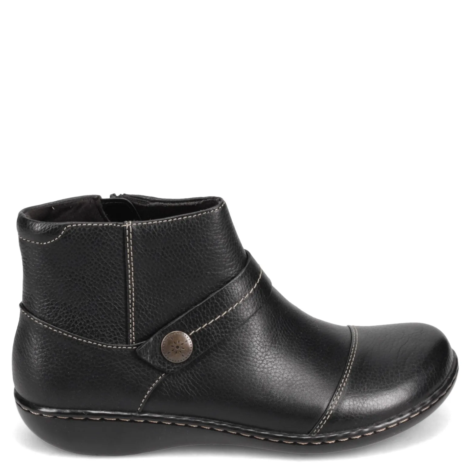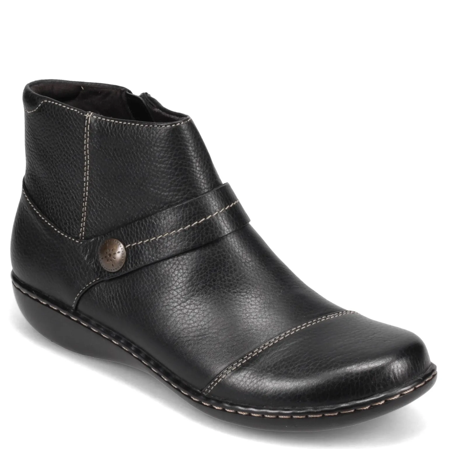 Women’s Clarks, Ashland Pine Boot. These classy low heel ankle boots are super lightweight and comfortable! The cushioned Ortholite footbed and classic look of this bootie make it a great choice this season.