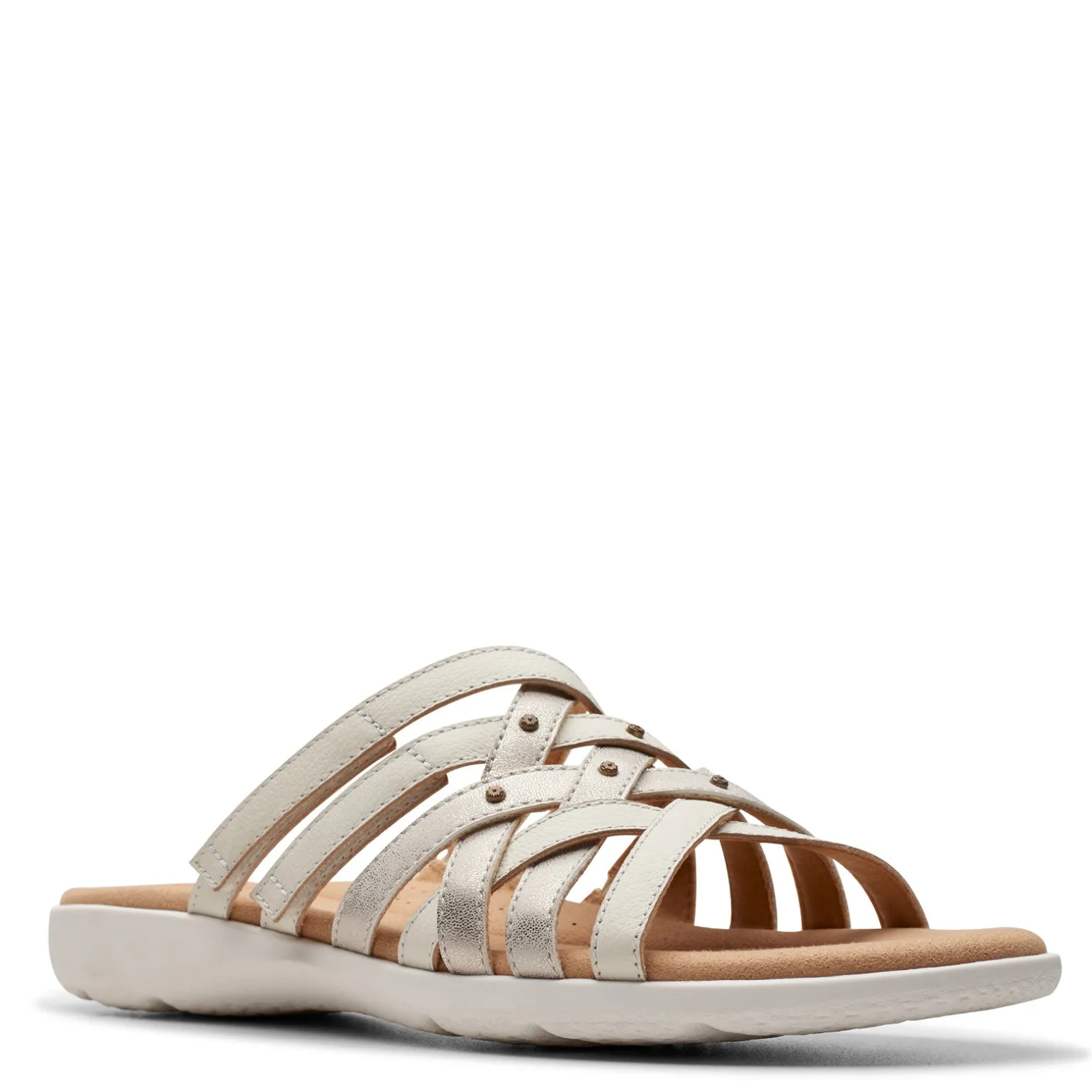 - Responsibly-sourced leather uppers in a strappy slide design