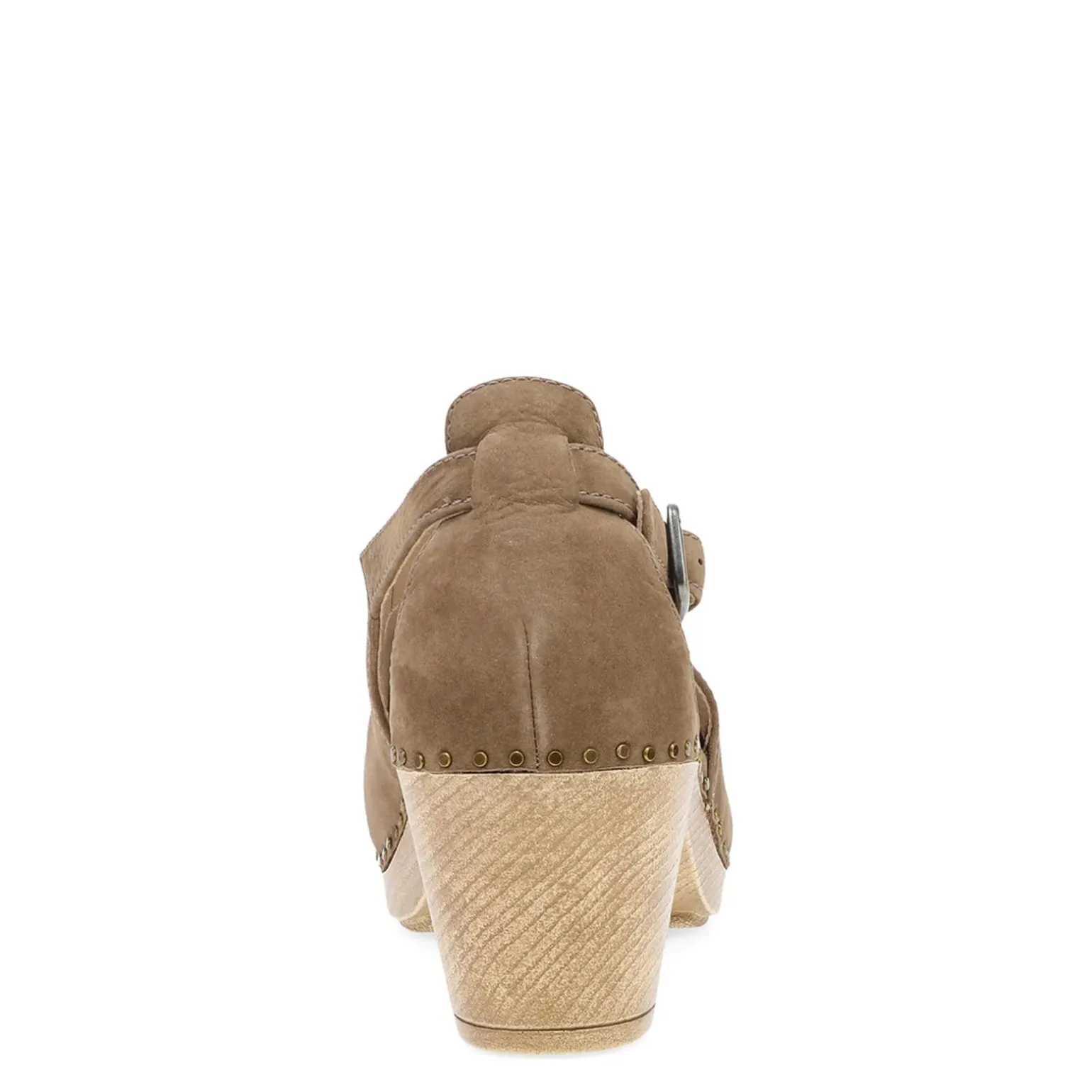 Combine comfort and style with the Sassy Clog from Dansko. This women’s clog features a burnished leather or suede upper, adjustable ankle strap, stapled construction and nailhead studded side detail.
