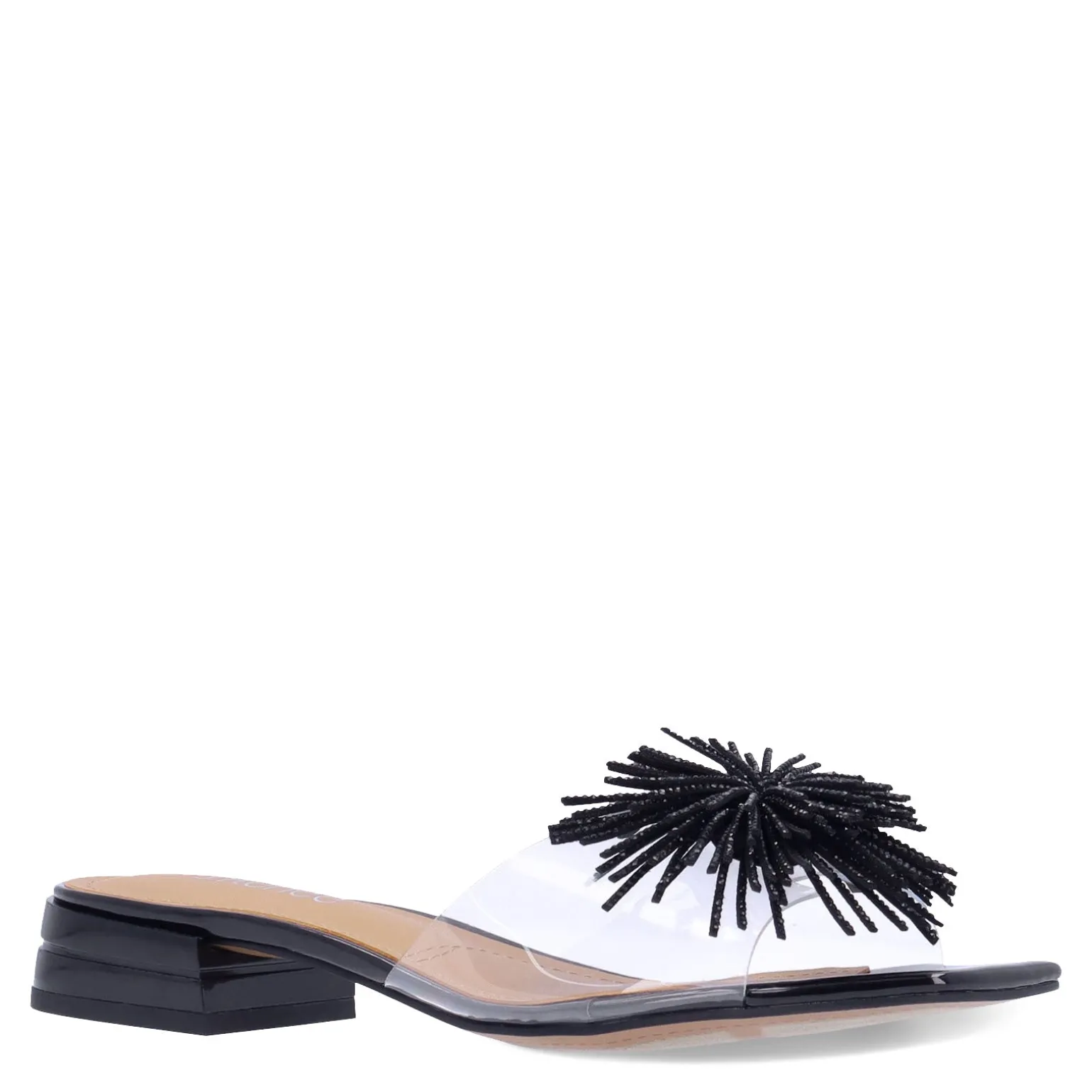 Step into sophistication with the J Renee Cherita slides, designed with clear vinyl straps for a modern twist on classic elegance. Featuring a comfortable memory foam and latex insole, these dressy slides boast a modest 1.25-inch heel, making them the perfect choice for both style and comfort.