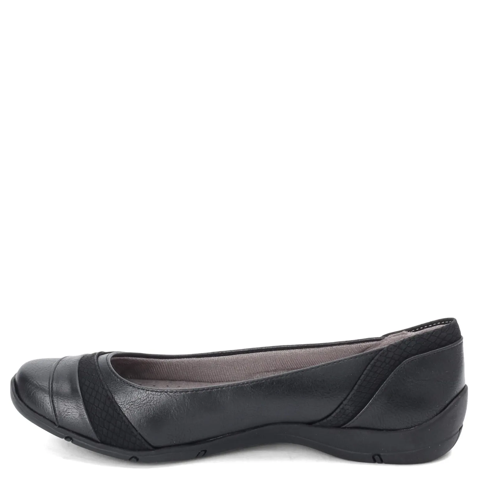 Women’s LifeStride, Dig Flat. Dig into your day in complete comfort! This stylish low heel style features a multi-textured design with a stipe of snake print for added flair.