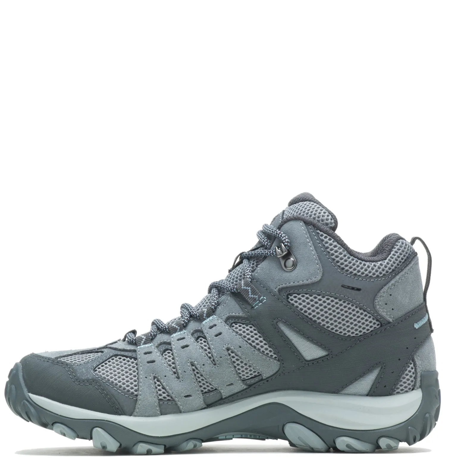 Take on all your adventures in the Merrell Accentor 3 Mid Waterproof Boot. This suede-and-mesh mid top hiking boot features a waterproof membrane, bellows woven tongue and rubber toe cap for durability and protection. A mid- height design with a grippy rubber sole cradles your foot to ensure comfort during long days on the trail Waterproof suede leather and mesh upper with 100% recycled mesh lining Bellows tongue keeps out dirt and debris Protective rubber toe capPartially recycled integrated EVA foam cushion insole Merrell Air Cushion in the heel absorbs shock and adds stabilityMolded nylon arch shank Merrell sticky rubber outsole offers reliable traction