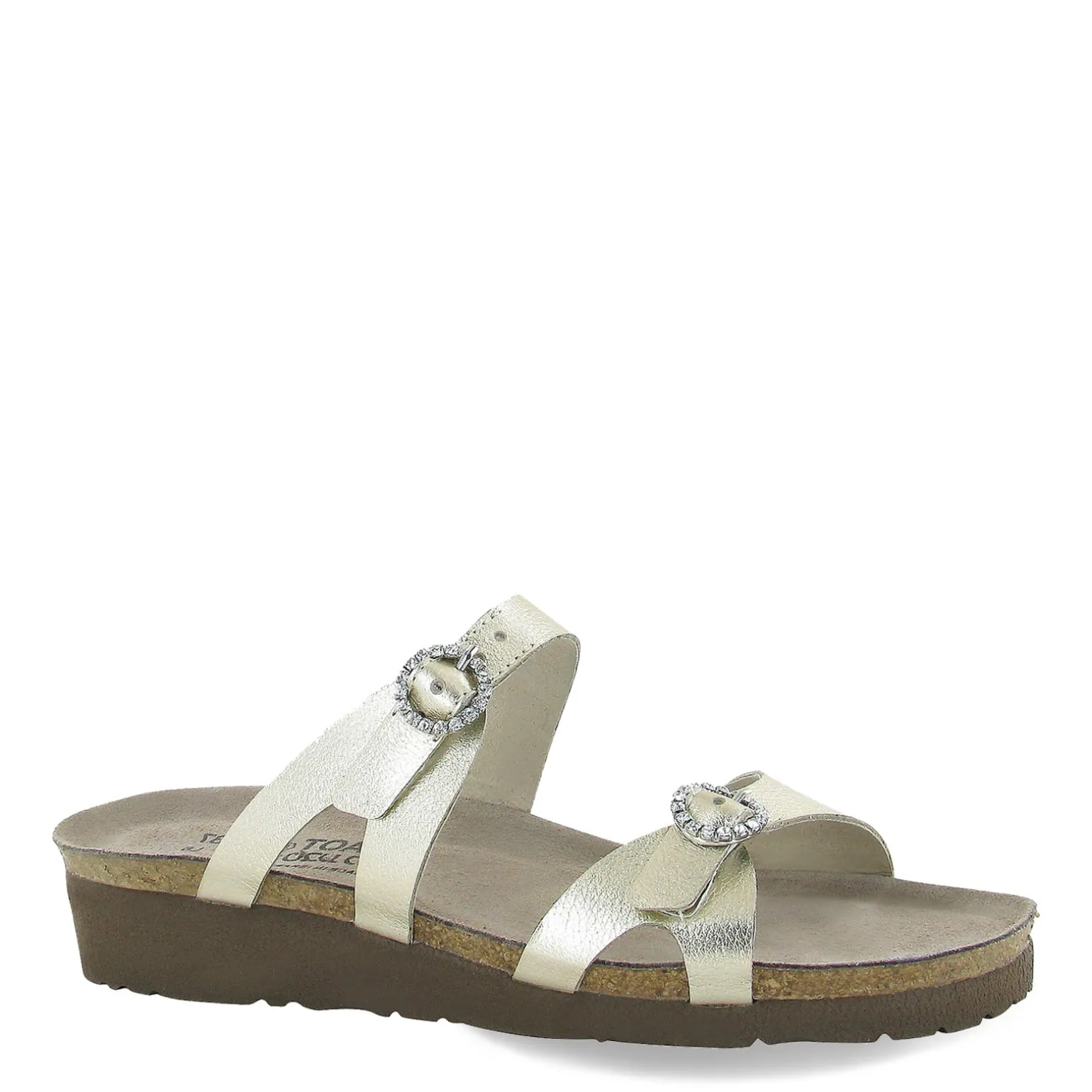 - Contoured cork footbed