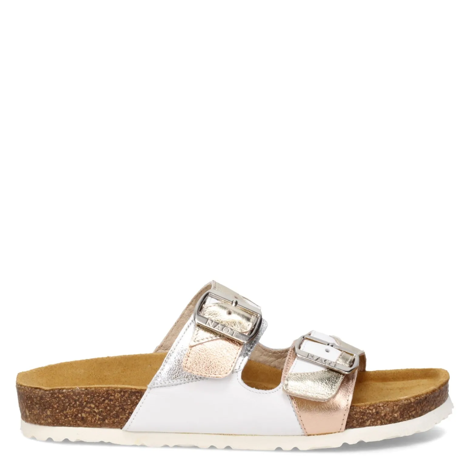 Women’s Naot, San Diego Sandal. Enjoy laid back styling and comfort with these slides. The two strap upper offers a classic look while the anatomic cork and latex footbed will keep your feet feeling relaxed.