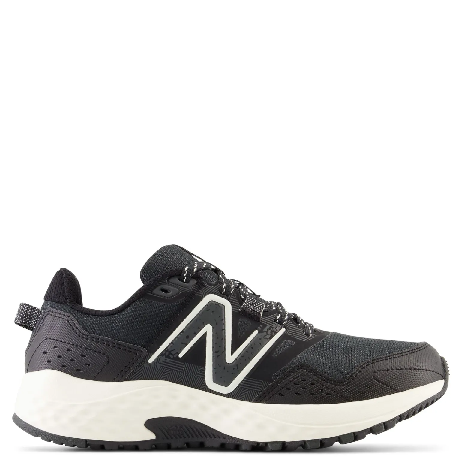 Hit the trails in the New Balance WT410V8. The All Terrain construction and treading along the sole make this pair of sneakers ideal for outdoor trail running Knit mesh and synthetic upper Lace up closure for a secure fit Padded collar and tongue for added support ACTEVA midsole ATtread rubber sole for dual-use – combining both trail and running lug designs for on and off-road running