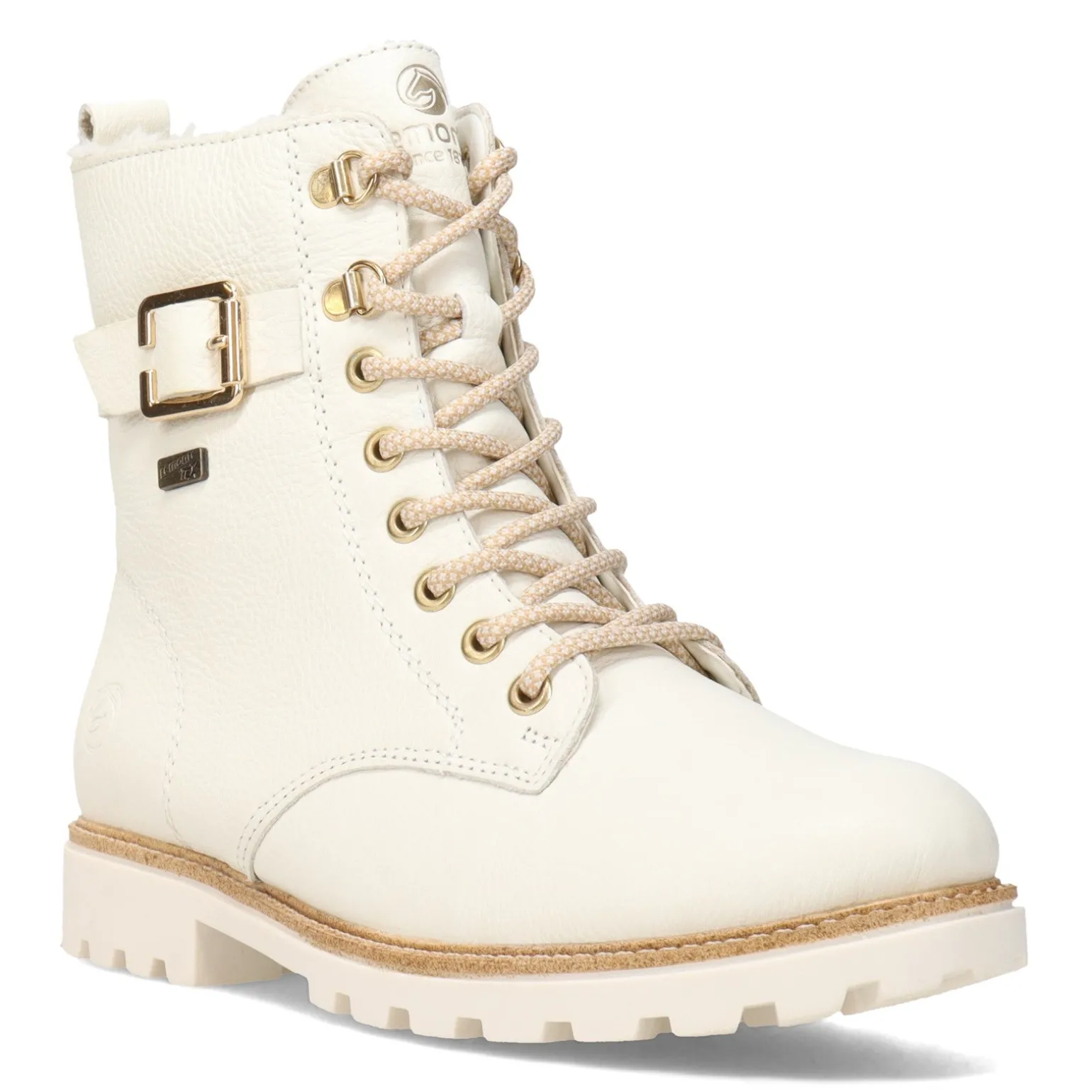 Women’s Remonte, Samira Boot. Classic style meets sophisticated details in Remonte’s Samira boot. Crafted with a cozy wool lining, water resistant upper and lug soles, it’s the perfect bootie to transition from day to evening. With its lace up front, functional side zipper, and gold metallic details, it is a classy alternative to the combat boots that are everywhere this season.