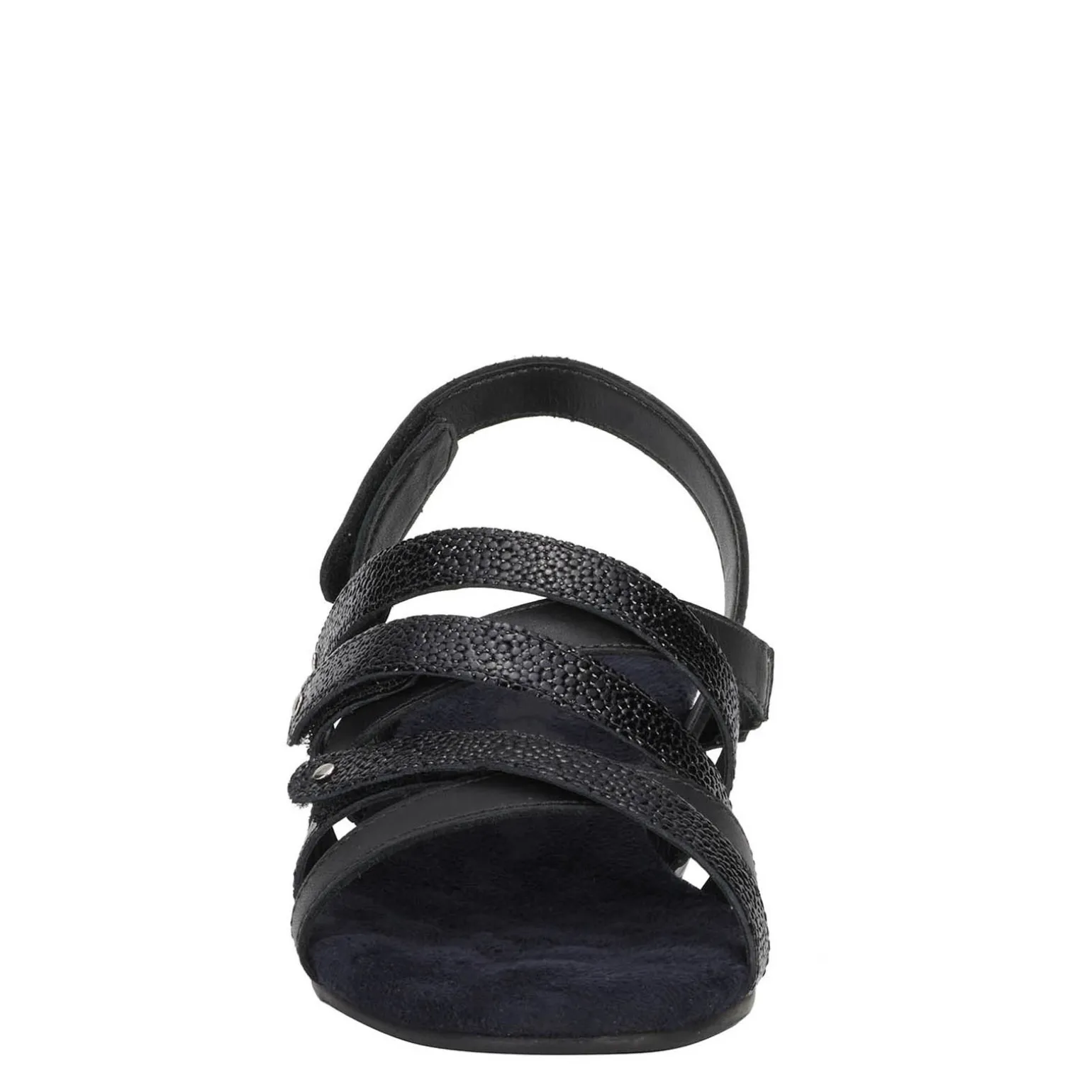 Experience comfort, versatility, and style with the Ros Hommerson Breeze Sandal featuring four adjustable hook and loop closure straps for a customized fit. With metallic nail heads, metallic trim heel detail for a touch of flair, and signature Tiny Pillows insoles providing cushioned support with moderate arch support, these sandals are perfect for stepping into summer with confidence.