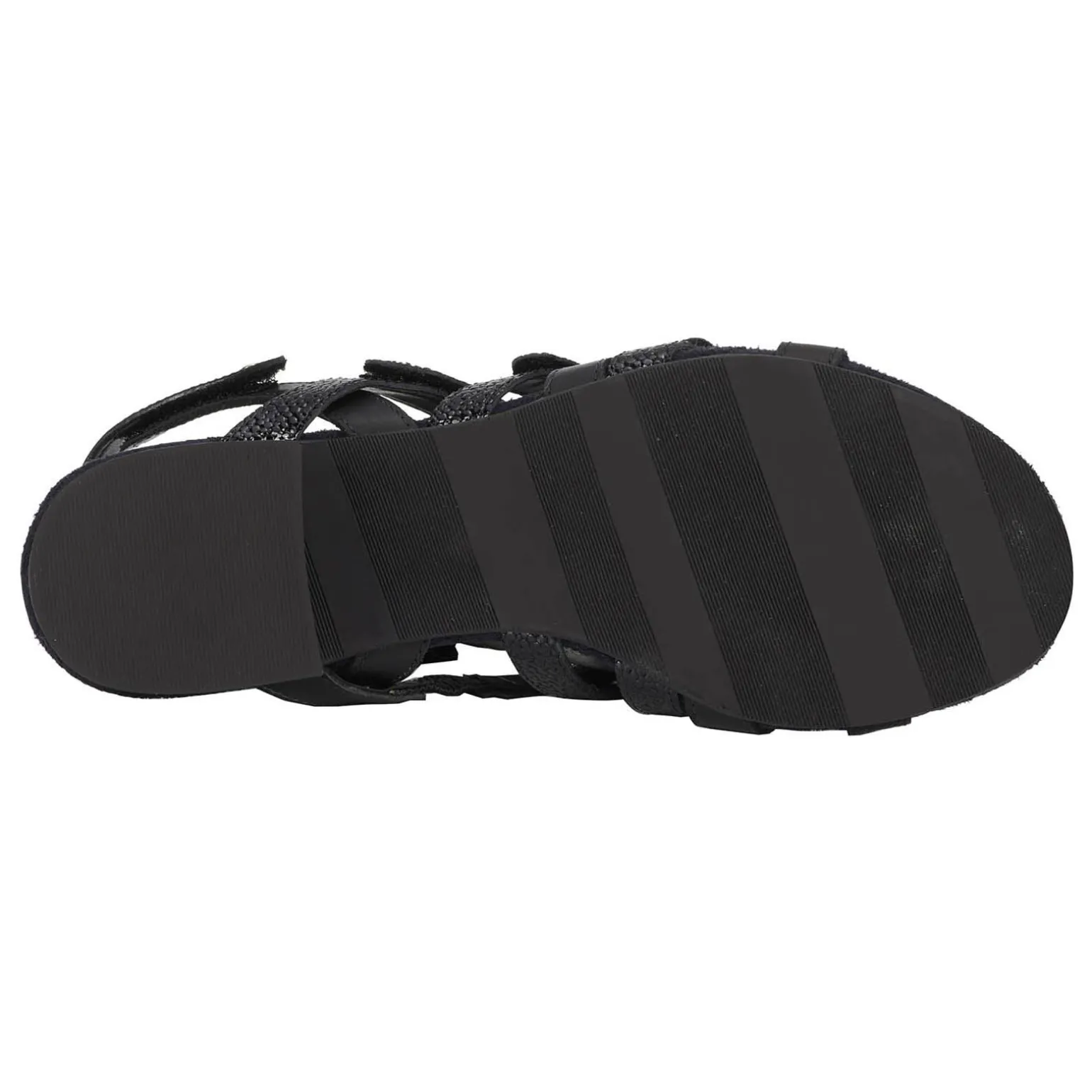 - Leather, pebbled patent leather or snake print leather uppers in a strappy low heel sandal style