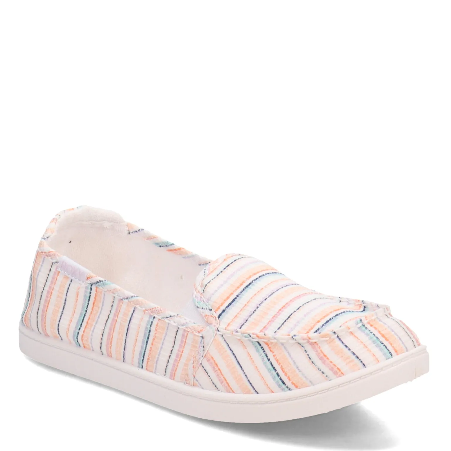 Women’s Roxy, Minnow VII Slip-On. The Roxy Minnow VII Slip-On has a cool fabric upper and contrasting sole with a memory foam cushioned insole that feels great underfoot. The stretchy sides make this style extra flexible and comfortable.