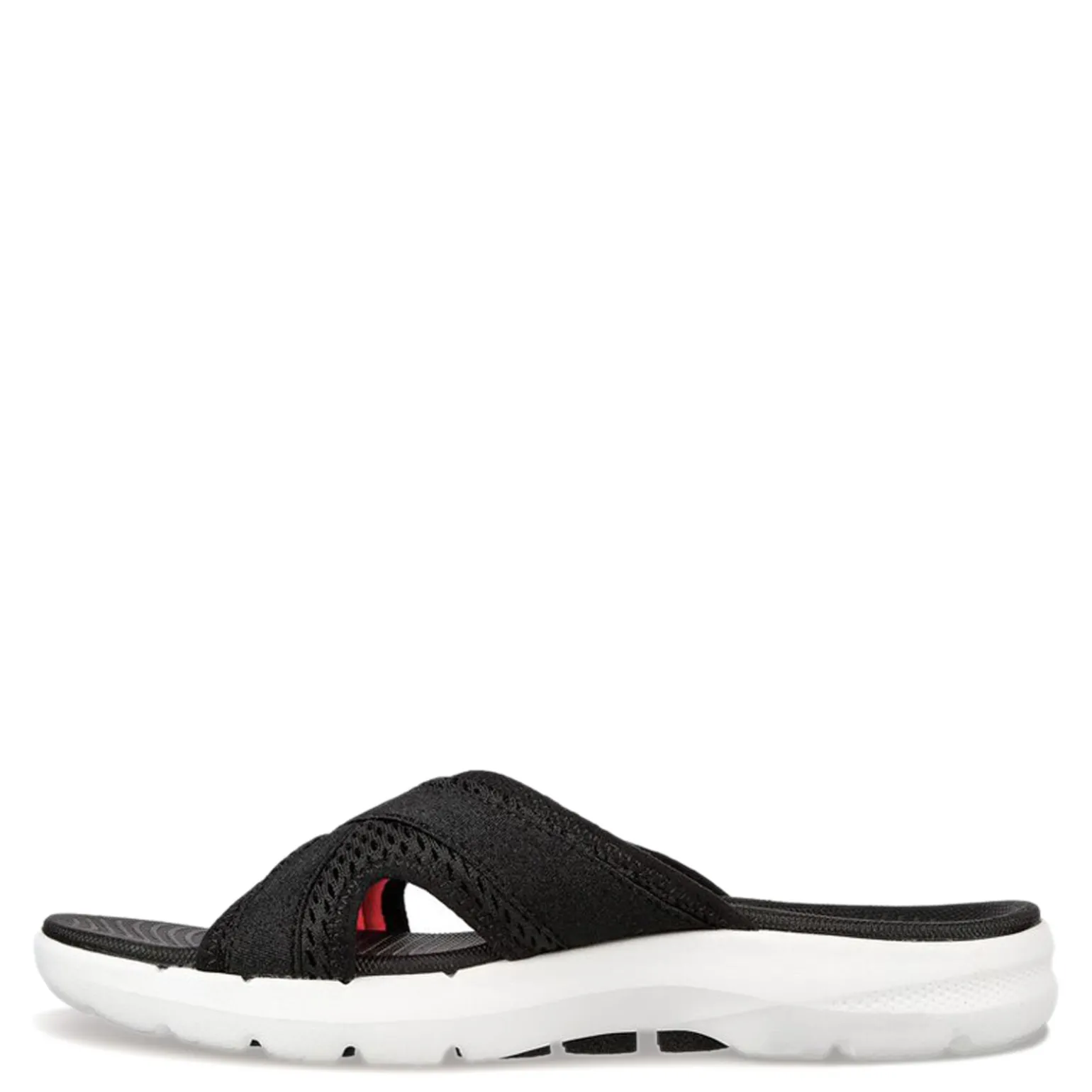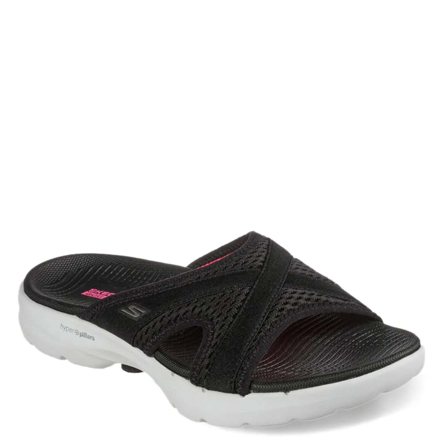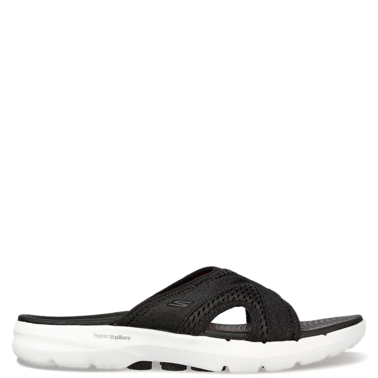 Women’s Skechers, GO WALK 6 Sandal – Beach View Sandal.A beach-ready casual slide sandal, the GO WALK 6 Sandal features a stretch knit upper and breathable mesh construction for a comfortable fit. The cushioned footbed provides support and all-day comfort, while the Hyper Burst cushioning and contoured Goga Mat insole provide added shock absorption for lasting comfort.