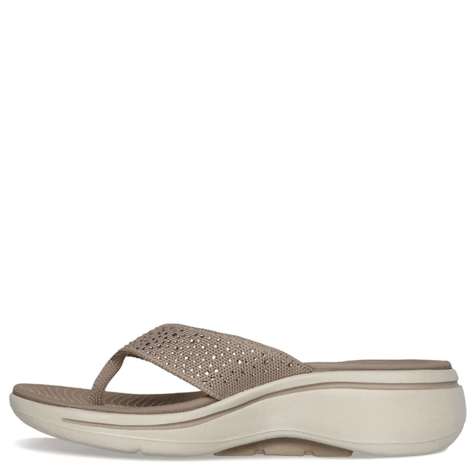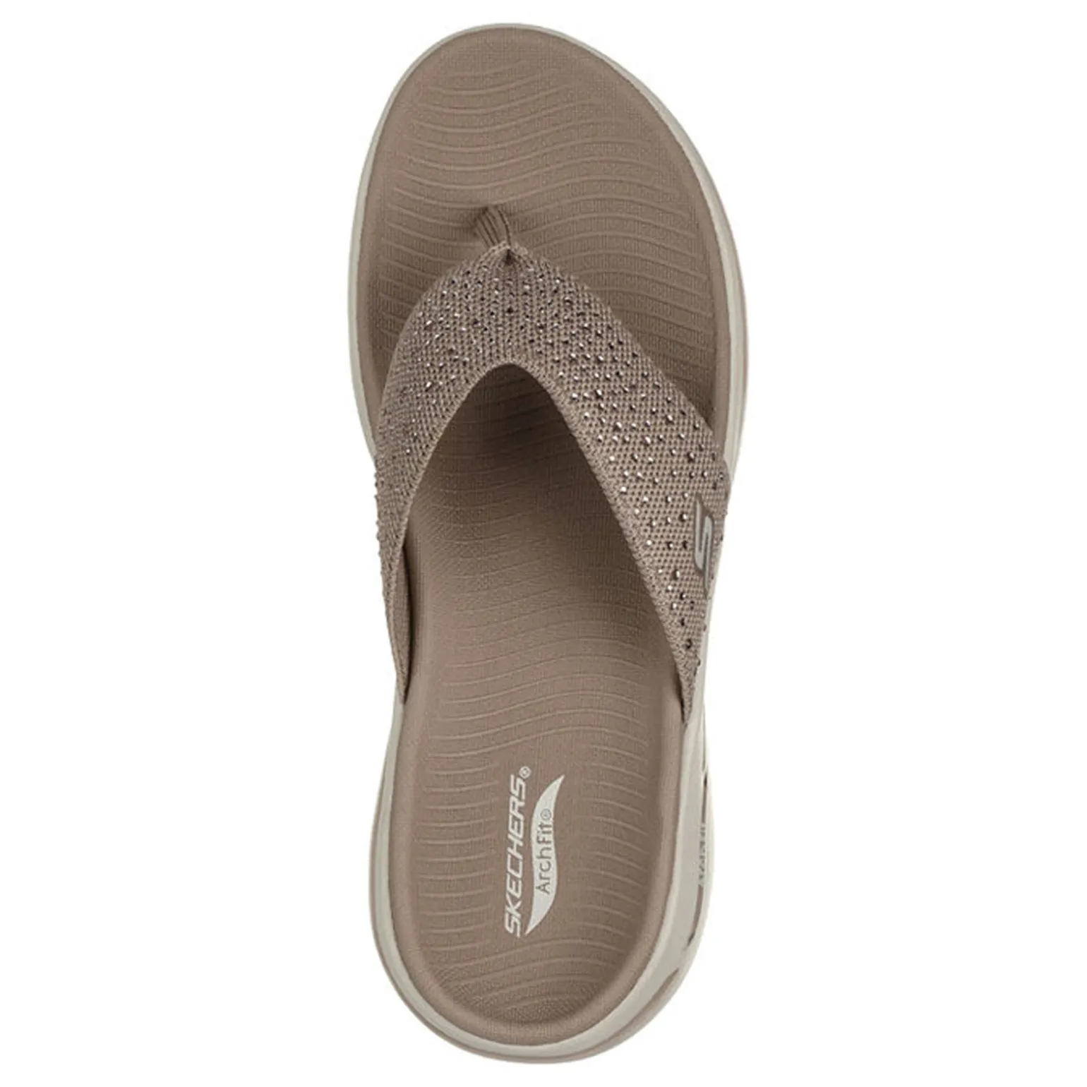 A sparkly thong sandal style, with a stretch fit fabric upper, that will keep your feet cool and comfortable all day! You’ll enjoy the cushioned comfort of the highly responsive ULTRA GO midsole and the patented Skechers Arch Fit insole system with podiatrist-certified arch support.