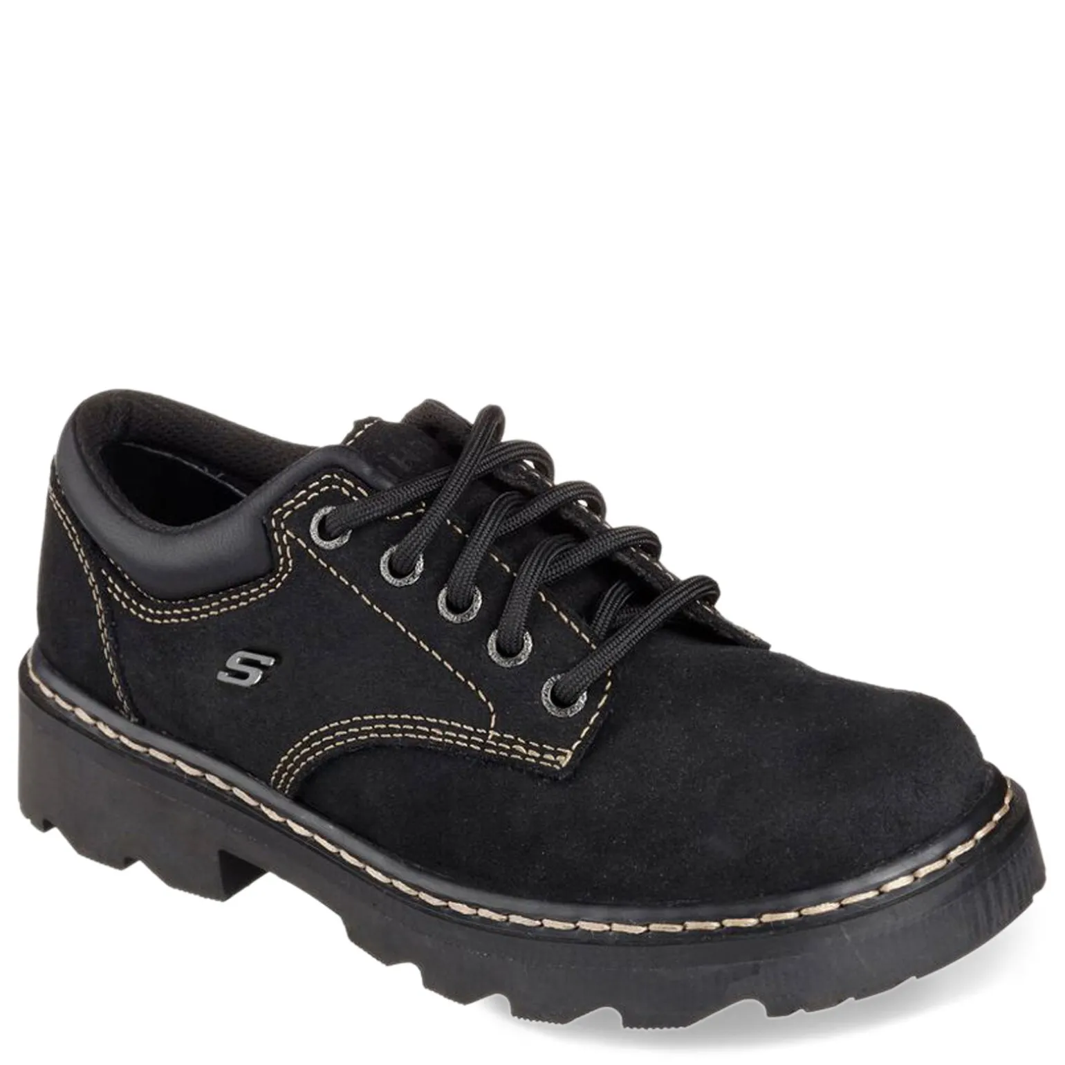 Women’s Skechers, Parties Mate Oxford. The SKECHERS Parties-Mate oxford is a great look for the casual lifestyle. Scuff resistant leather in a lace up casual oxford with plain toe. Stitching and overlay accents add detail to this comfortable lace up shoe. The 1/2 inch thick lug traction sole provides extra stability while the 1 inch heel makes this a great everyday wear option.