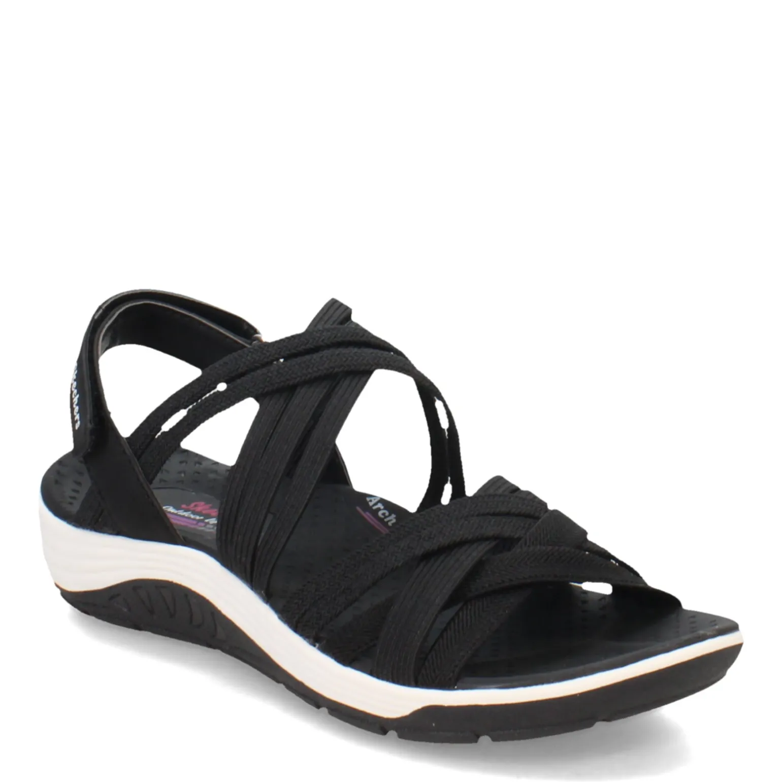 Relax in style and summer-ready comfort with Skechers Reggae Cup – Simply Biased sandals. These strappy favorites boast a Stretch Fit woven fabric upper, adjustable sling-back closure, and Arch Comfort contoured footbed for the perfect blend of support and ease.
