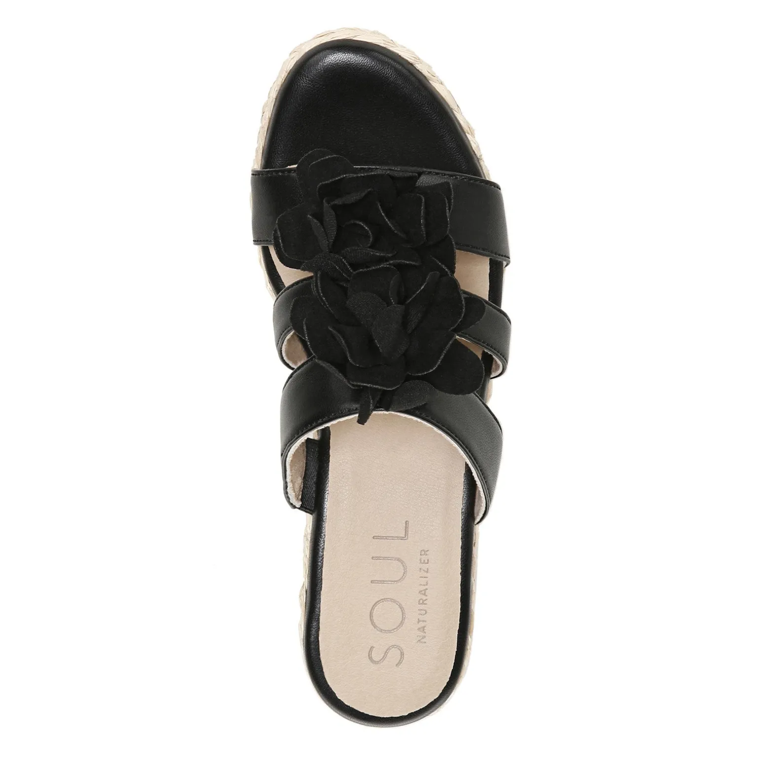 Women’s SOUL Naturalizer, Oodles Flower Sandal. Oodles is a casual wedge sandal designed for all-day comfort. The flexible, soft foam insole has arch support and the lightweight outsole delivers traction on a variety of surfaces. A flower vamp design gives this shoe a fun twist.