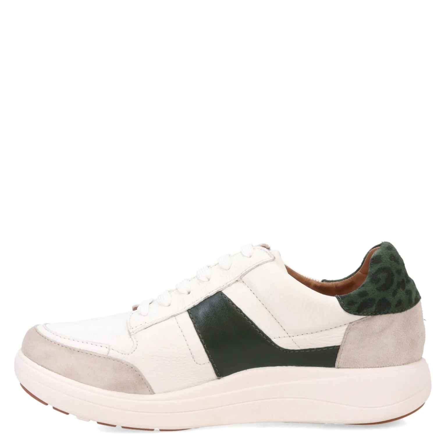 - Leather and fabric uppers
