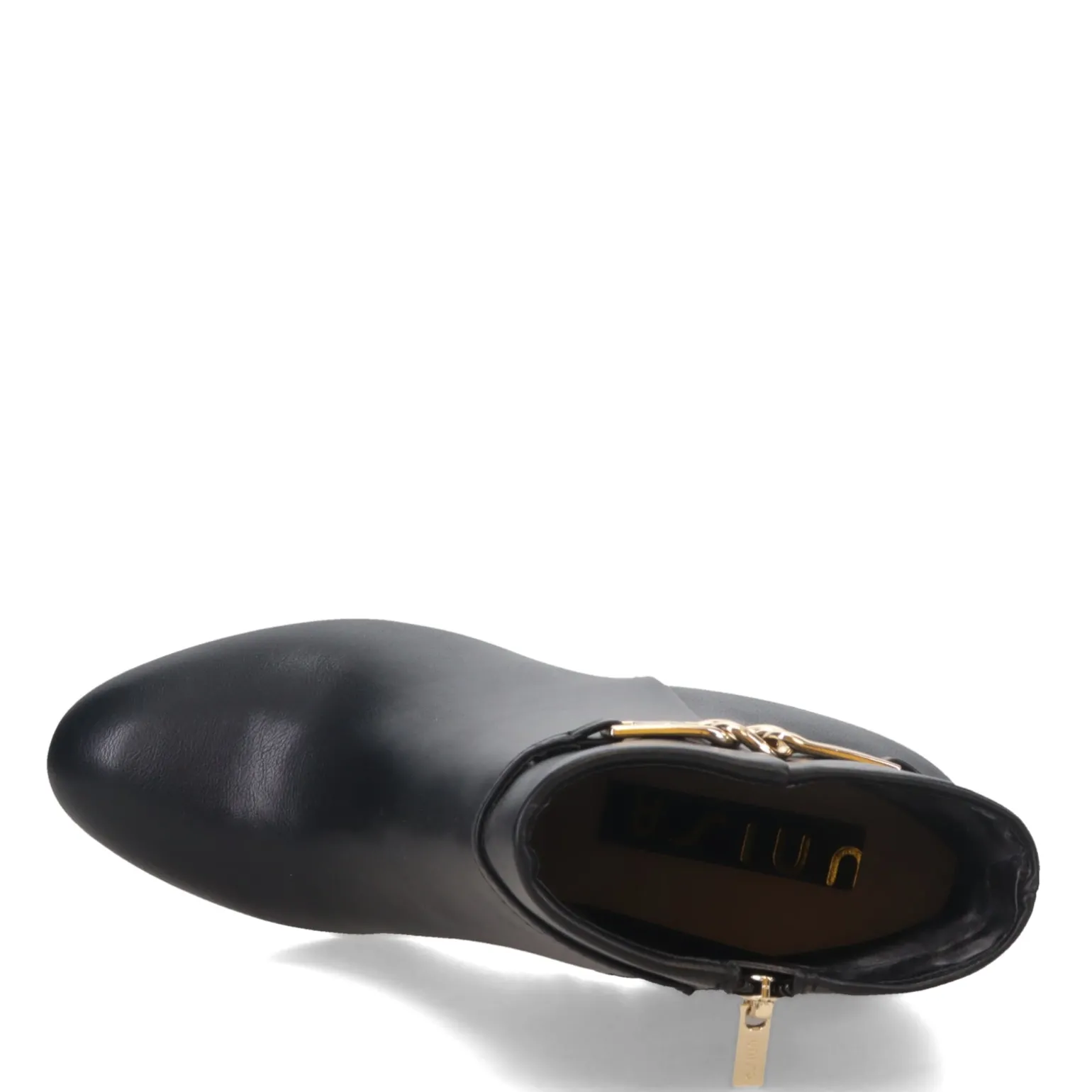 Be the girl with the most fashionable look in the room in this stacked heel boot. With a sleek faux leather upper and featuring classy buckle for extra appeal, this ankle boot has a lightly padded insole to comfort while the high stacked heel provides stable lift.